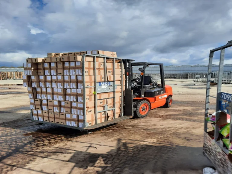 Denna motviktstruck är designad för att klara varierande miljöer. Med robust konstruktion, stora hjul och god markfrigång fungerar den även på ojämna underlag och i utomhusmiljö.