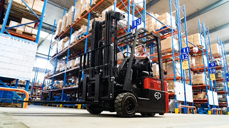 Kontakta för offert. EP TVL201 är en kraftfull 3-hjulig elektrisk motviktstruck (gaffeltruck) med 80V litiumbatteri, 2000 kg lyftkapacitet och upp till 6000 mm lyfthöjd, utvecklad för effektiv truckkörning i trånga lager, smala gångar och logistikmiljöer. Med dual drive, kompakt chassi och stark prestanda är den optimal för både lagerarbete och lastning/lossning.